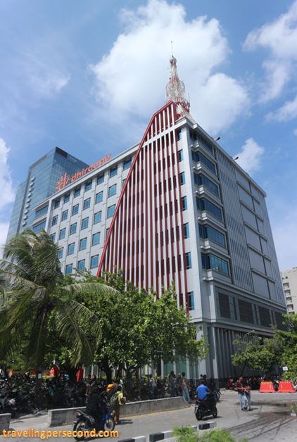 Dari Hukuru Miskiyy berjalanlah ke arah pantai utara maka kamu akan melewati bangunan modern ini: