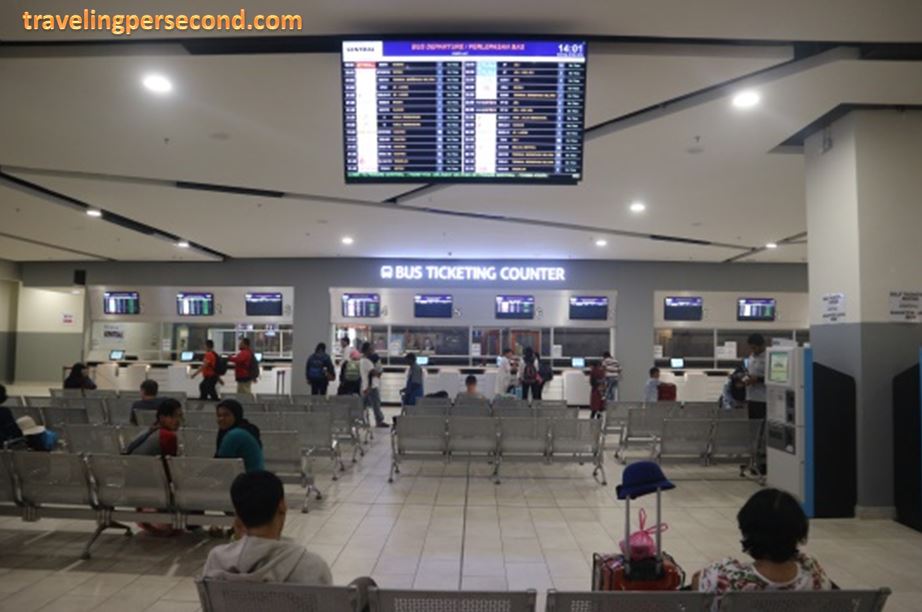 Pertama, Kamu bisa langsung membelinya di Bus Ticketing Counter di lantai 2. Berikut ini adalah suasana konternya:
