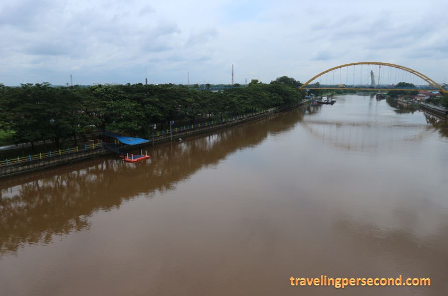 Kabarnya sungai Siak ini memiliki 4 jembatan yang menjadi landmark Pekanbaru. Setelah bermandi keringat akhirnya Aku tiba di tepian sungai Siak. Tepat di bawah jembatan Siak 1