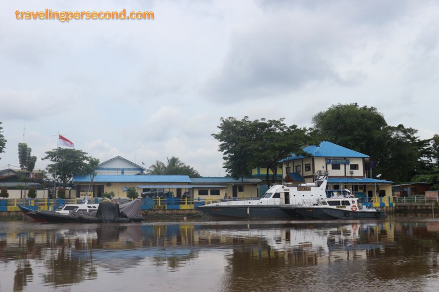 Dan diseberang sungai terlihat jelas markas Polisi Air dengan aktivitas di dalam kapal patroli yang begitu sibuk.