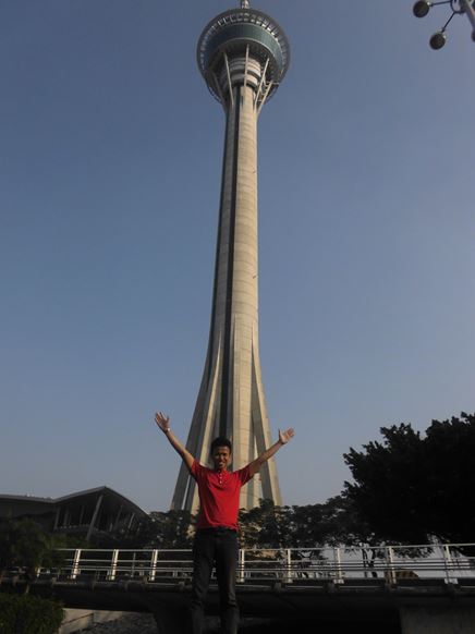 Dalam 7 menit aku turun di pelataran luas di depan Macao Tower.