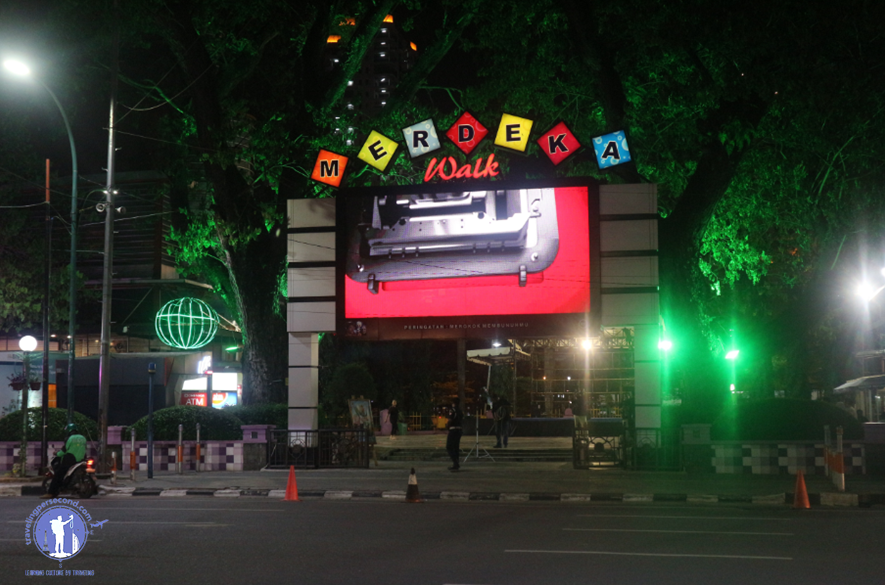 Malam semakin beranjak, dalam gerimis lembut aku menuruni anak tangga di bagian belakang Merdeka Walk untuk melihat aktivitas di Lapangan Merdeka. Sepertinya lapangan ini menjadi area pilihan buat anak-anak yang memungkinkan baginya untuk berlarian dengan lega atau sekedar berkendara keliling dengan mobil-mobilan yang bergemerlap lampu warna-warni.