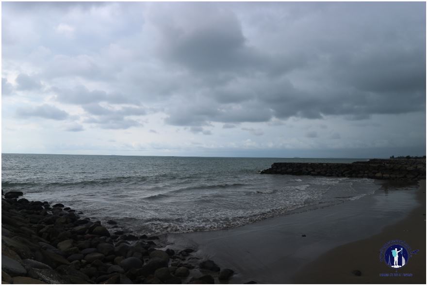 Once in a while drizzle began to fall, but never mind, I could still stand on rock embankment which was built jutting toward sea. I really enjoyed my short time to feel the beauty of Padang. While some visitors began to leave plastic benches which were provided by pensi (clam) and young coconut traders.