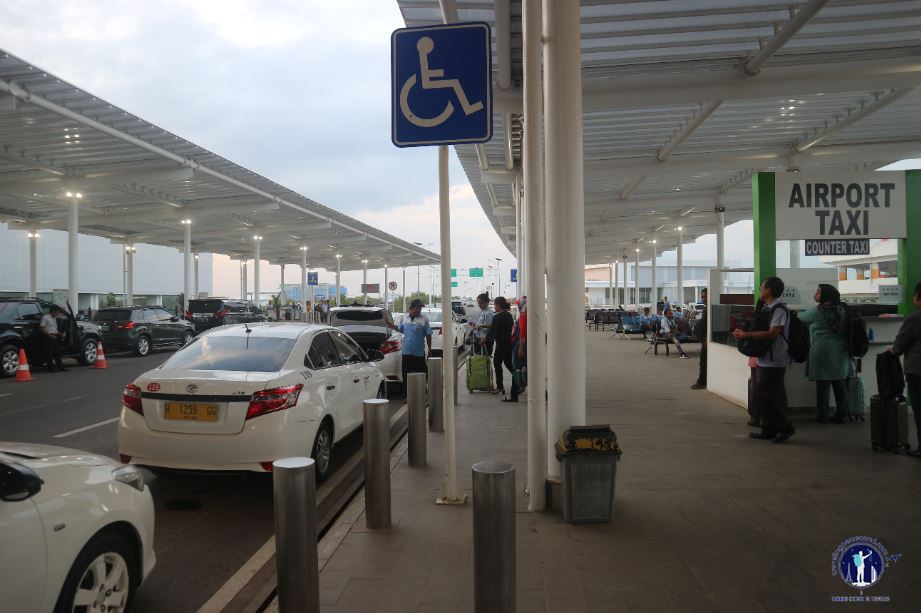 Exiting commercial zone building, I was greeted by a double corridor separated by a four-wheeled vehicle lane. This is taxi zone and drop and pickup zone. This corridor looks neat with round poles and spandex roofs. Meanwhile, under the shade, waiting chairs are arranged along corridor. I myself chose taxi transportation mode to downtown, considering that this was a business trip which all costs were paid by office where I work.