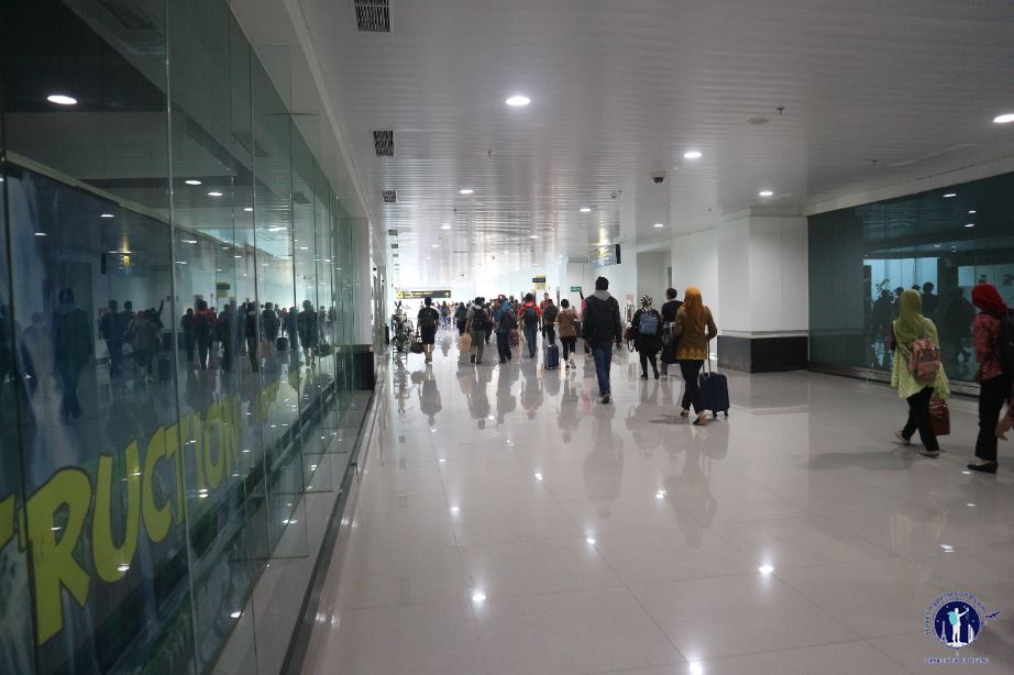 After going through baggage claim area, a row of information provider counters have been prepared, such as Tourist Information Center, BP3TKI, money changers and TRAC car rental companies. Meanwhile, between main building and road for in and out of the airport are separated by a stretch of water. Yes, I was currently in a floating terminal which covering 7 hectares area which was built on a swamp.