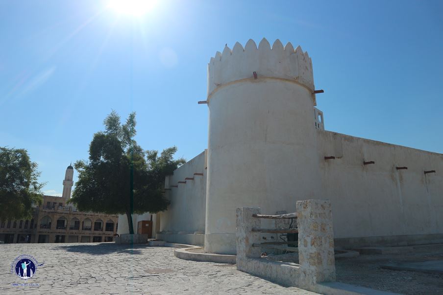 Sebelum benar-benar tiba di Msheireb Museum, langkahku tertahan di bawah sebuah bangunan ikonik, yang dari bentuknya aku sendiri faham bahwa itu adalah bangunan pertahanan atau benteng. Sewaktu kemudian, aku mengenalnya sebagai Al Kort Fort.
