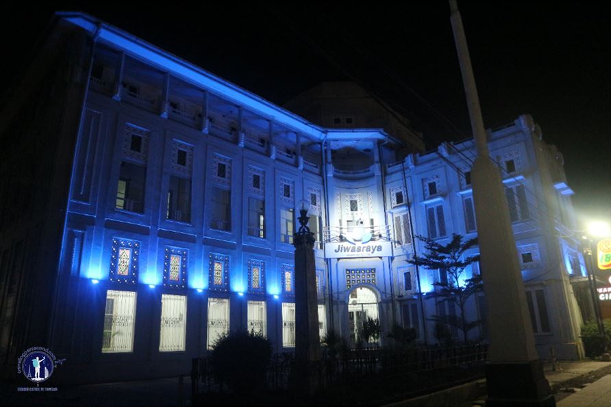 While across street from Blenduk Church, lied Jiwasraya building, which was Letter-L shape, 104 years old, and was splashed with alternating red-green-blue light spectrum. It was ex-Nederlandsch Indische Level Sverzeking De Lifrente Maatschaapij (NILLMI), arguably as the main Dutch insurance business in past time. Also functioned as City Hall during Dutch colonialism era.