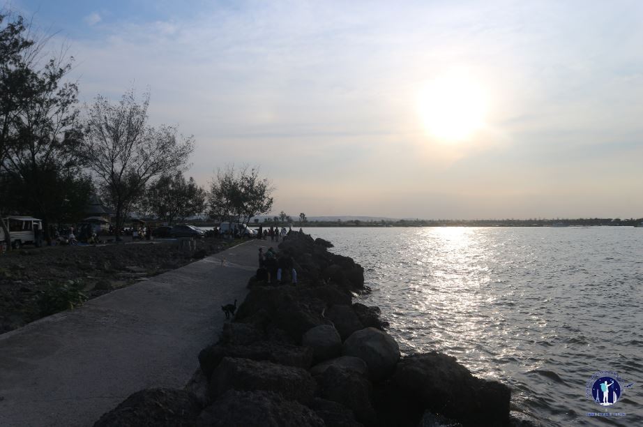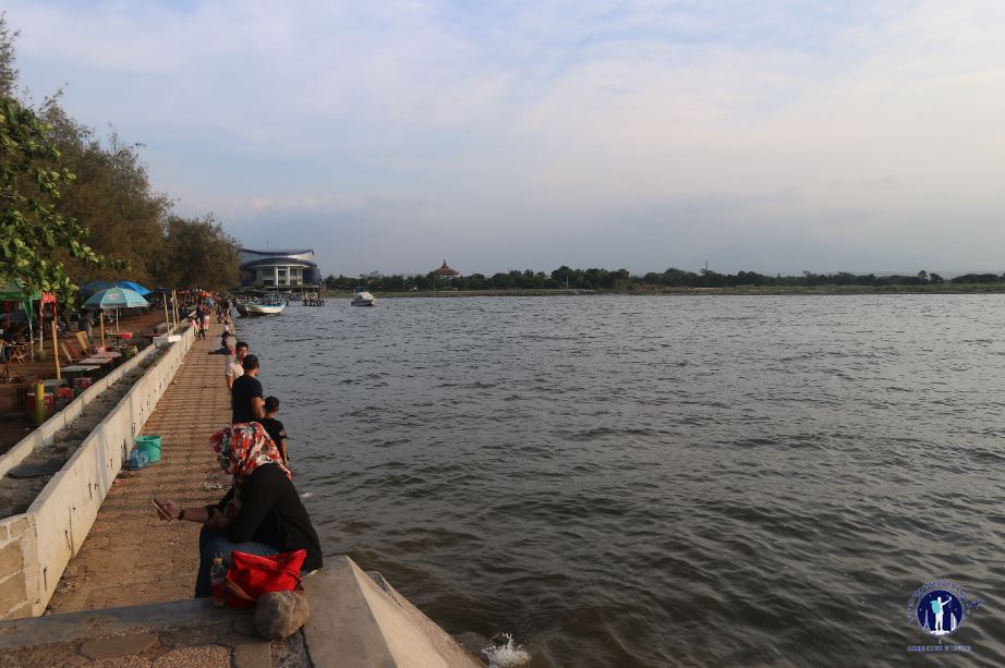 The sun which had started to fall, prompted me to get up and stepped on concrete embankment area as well as pedestrian area which was still reinforced by giant rocks in shoreline. Making this beach could no longer show its natural beauty.