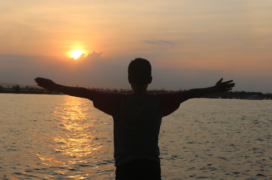 I started to take a tripod, aimed my smartphone towards the sun which began to clearly round and slowly turned into orange color. Youth people from north of coast began to move to take up their best position on west of coast. Meanwhile Mr. Muchlis looked more relax, sitting and enjoying a portion of “lontong” (rice roll). Meanwhile, I just sat cross-legged right on beach side, next to my smartphone camera which was working to capture that special moment.