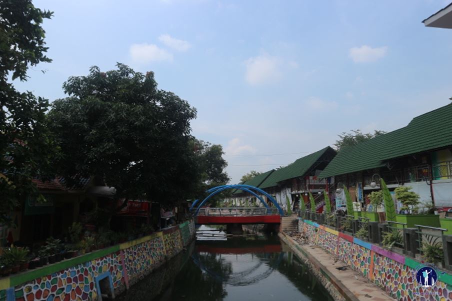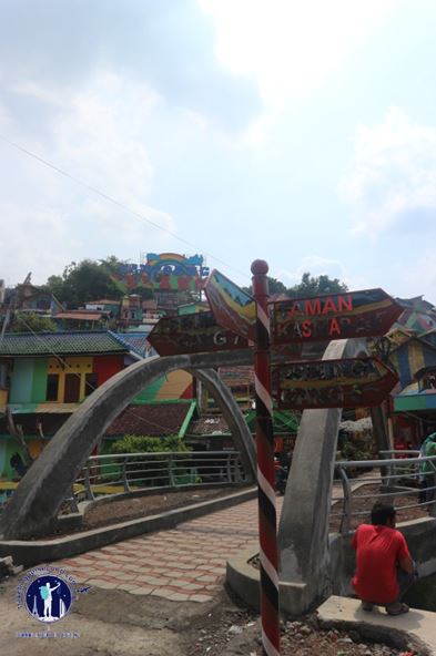 I started to enter Kampung Pelangi through a small arch patterned bridge. On this bridge, existence of Flower Market and Kasmaran Park had been informed to tourists through a signpost. Meanwhile, Semarang River looked neat with presence of colorful painted river wall, complete with sidewalk right on river side.