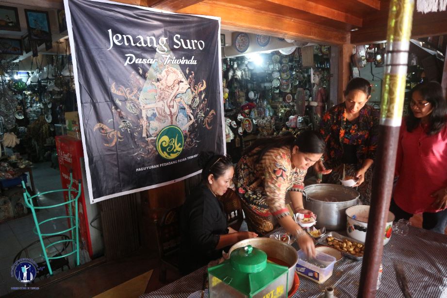 I turned around before I finally found a small crowd around market door. Four middle-aged women were seen opening a food stall and putting up banner which reading “Jenang Suro”. Suro was a substitute for the name of Muharram Month in Solo City. So I could be sure, this activity had something to do with the Islamic New Year. I tried to get closer and one of them waved to me with a smile.