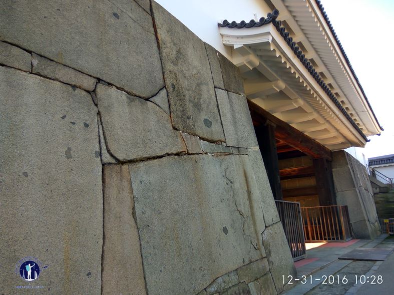 Melewati sebuah jembatan, jalur pejalan kaki mulai mengarahkan setiap wisatawan memasuki sisi Otemon Gate. Diawali dengan pintu berbahan dua lembar baja menjulang. Setelahnya, terpampang dinding-dinding berbahan andesit halus yang beberapa diantaranya dibiarkan utuh dengan panjang dan lebar hampir lima meter.