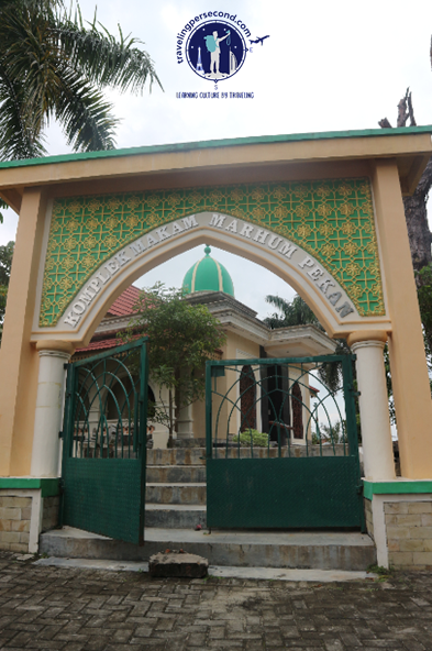 Keluar dari masjid aku menuju ke sisi timur menuju sebuah gerbang pemakaman. Bernama Kompleks Makam Marhum Pekan yang merupakan komplek makam para pendiri kota Pekanbaru seperti Sultan Abdul Jalil Alamuddin Syah (Sultan ke-4), Sultan Muhammad Ali Abdul Jalil Muazzam Syah (Sultan ke-5) beserta para panglima perang setianya.