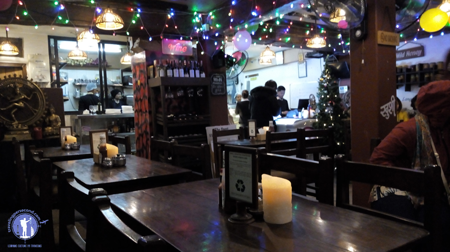 Street food scent in the midst of groups of Nepalese youths was a perfect blend in the cold air of Pokhara. Temperature of 8o C slowly intimidated stomach. And it felt like I couldn’t afford to eat and sit for long time in sidewalk, cold night temperature had made my unprotected hands and face stiffen. In the end, footsteps led me into AM/PM Organic Cafe. A cup of Masala Tea with vegetarian fried rice would warm the body towards midnight which was being awaited by all people in the world.