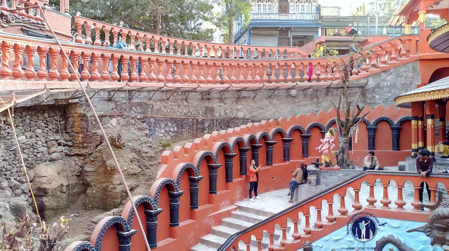 I started to enter the gate of Gupteshwor Mahadev Cave, which at its top stood the dashing Lord Shiva holding his trident in cross-legged position. Through it, then walking in tarpaulin-covered entrance route with a row of souvenir stalls on either side. Then I was greeted by the presence of Lord Vishnu statue which sleeping next to the main building.