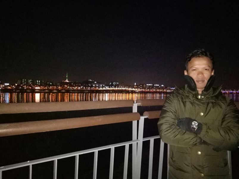 Perlu waktu 20 menit untuk bisa untuk bisa tiba di taman yang berada di tepian Han River. Memasuki taman yang mulai gelap dengan minim penerangan sebetulnya sedikit menciutkan nyali. Beruntung ada serombongan keluarga Korea yang memasuki taman dan menuju tempat yang sama. Dengan pura-pura menunjukkan ketenangan aku menguntitnya dari belakang….Hahaha, dasar pengecut kamu, Donny.
