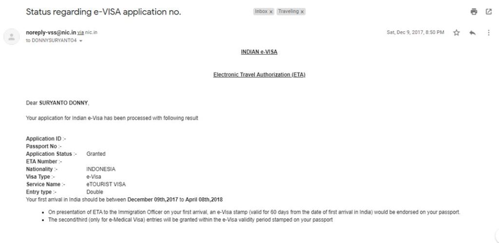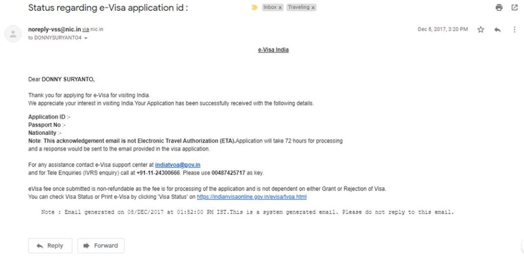 Sedangkan pengalaman berikutnya dalam pengajuan eVisa India terjadi pada 8 November 2018.