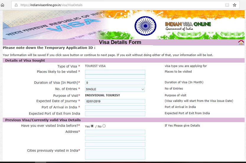 Inilah keuntungan pengajuan eVisa India dimana kita bisa mengisi e-form dalam beberapa waktu (tidak sekali isi). Biasanya pada kesempatan mengisi e-form pertama kita akan diberikan No Application ID yang merupakan akses masuk ke data pengajuan kita jika kita ingin melakukan editing atau melengkapi data.
