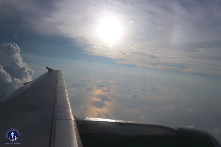 Getaran mulai terasa ketika pesawat ingin menstabilkan ketinggian terbangnya. Tetapi setelahnya langit kembali bersih dan menampakkan keindahan dari ketinggian. Sore itu aku tak mau memejamkan mata dan melewatkan pertunjukan langit yang menakjubkan itu.