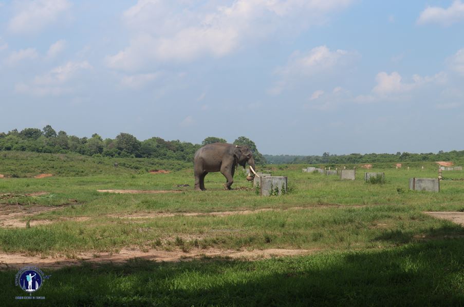 Aku memilih duduk di bawah gazebo demi melihat gajah-gajah yang dilepas di hamparan luas padang rumput di sebelah timur Kolam Mandi Gajah. Tampak tujuh gajah berjalan bebas di sana….tetap sambil menguyah rumput jenis gajahan yang tampaknya sengaja di taruh di beberapa titik oleh para mahout. Aku hanya berfikir bahwa gajah-gajah itu tidak boleh dibiarkan lapar, daripada terjadi masalah yang lebih serius.