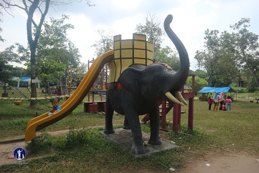 Sementara anak-anak lain yang tak mendapat kesempatan menunggang gajah lebih memilih berkhusyu’ria menikmati berbagai wahana permainan sederhana di playground, seperti prosotan yang berpangkalkan patung bledhug*2), ayunan dan titian gantung rendah.