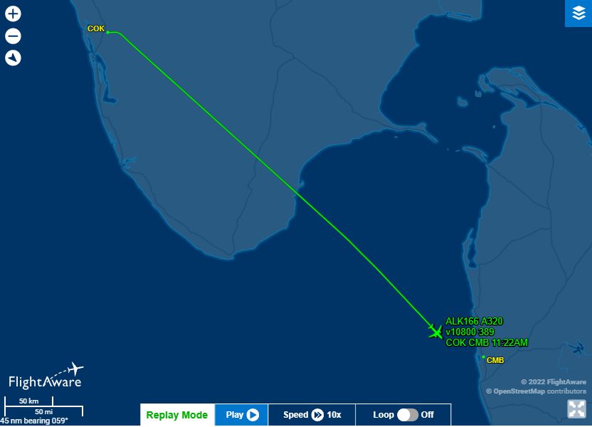 Rute penerbangan SriLankan Airlines UL 166 (sumber: flightaware)