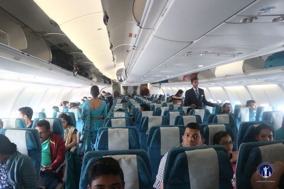Di pintu pesawat aku disapa oleh barisan pramugari berbusana sari warna hijau dengan motif bulu merak yang merupakan seragam khas awak kabin Srilankan Airlines, flight carrier milik “Negara Permata Samudera Hindia”.