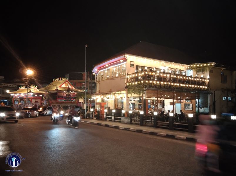 Tak hanya menikmati sajian kuliner jalanan, beberapa anak muda juga tampak asyik menikmati malam di Kopi Tiam Rusen yang tampak mencolok berdiri di tepian Jalan Niaga.