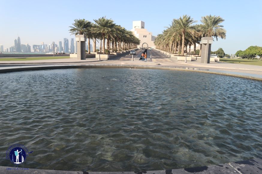 I arrived at the beginning of a very large city park. Being parked Doha Hop On Hop Off Bus in this park showed that this spot was one of main destinations for sightseeing tours around the city. Right next to the shelter, lied the front gate of a spot which was marked by a circular pond. The spot was the Museum of Islamic Art.