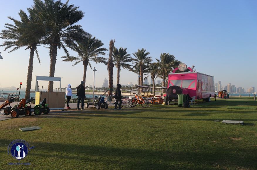 I left the busyness of Dhow Harbor to head to my next destination. At first glance, I passed a row of Catamaran ferries which leaning in a side of beach with guarding by big body security guards. What I understood at a glance was that this was part of cruise to Doha’s famous Banana Islands Resort. This was tourism activity of wealthy tourists who have to spend about 400 Riyal per night for just staying in a banana-shaped artificial island in the Persian Gulf.