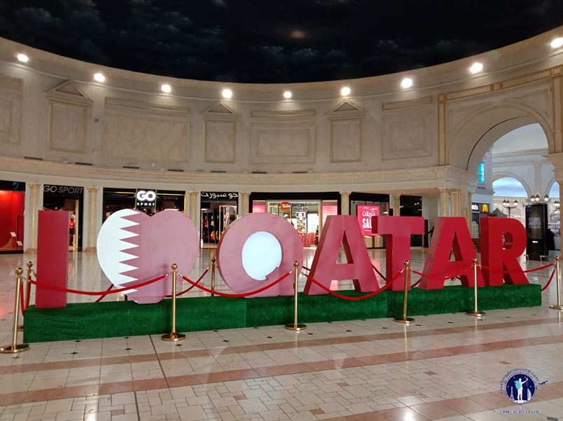 Apparently the word “I LOVE (LOVE was symbolized by the heart)” which was famous in tourism promotion of every nation had also spread in Qatar. The nameboard greeted me in a hall right next to the entrance. Red and white, that was the dominant color, matched the colors of Qatar flag. Red jagged white, or white jagged red, I didn’t know?