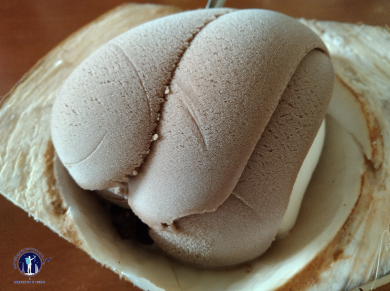 Dan sebelum duduk, aku sudah memesan es krim kombinasi rasa coklat, durian dan vanilla yang disajikan dalam batok kelapa muda. Begitulah cara memesan es krim di kedai ini, penjual akan meminta kita menyebutkan tiga jenis rasa yang akan dituangkan dalam dua pilihan wadah, yaitu di batok kelapa atau di gelas kertas berukuran standar.