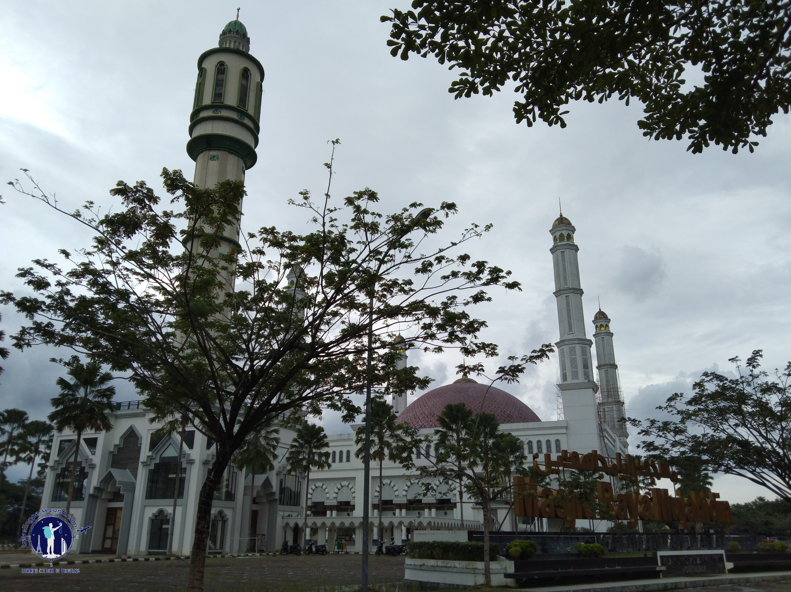 Genap berjalan kaki selama setengah jam dan menempuh jarak hampir 2,5 kilometer untuk kemudian aku tiba di Masjid Raya Mujahidin sisi selatan.