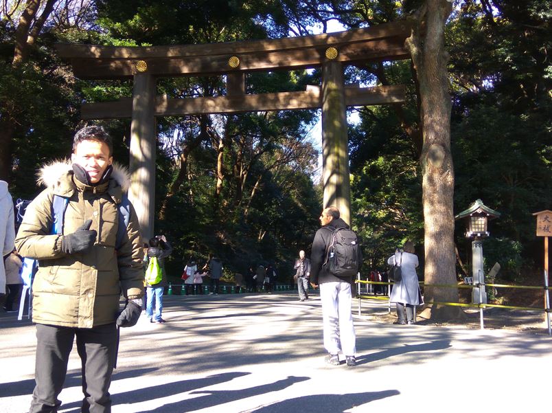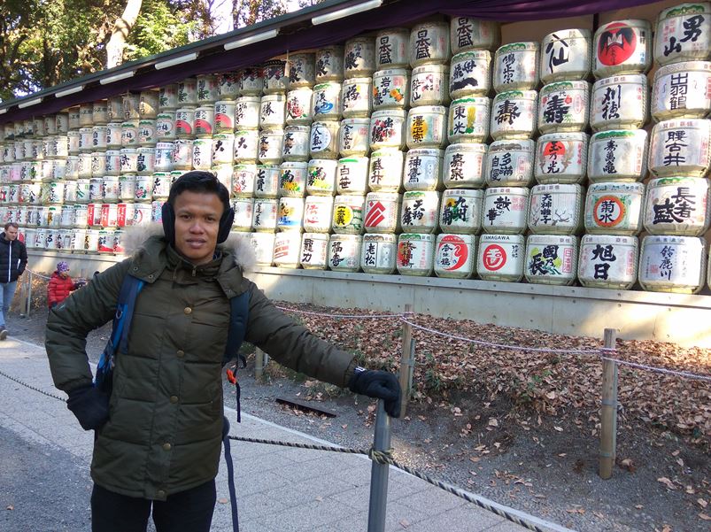 Now I was posing in front of Meiji Shrine gate. The Torii was so distinctive, the inspiration for a famous automotive company logo in “the Land of Samurai”. I walked through smooth gravel as the entrance to the temple. The path had a width of one meter on left side, combined with a one meter wide paving block path bordered by rope for exit route on the right. Meanwhile, in some parts, the path was bordered by bamboo fences which were neatly arranged as high as the waist of an adult.