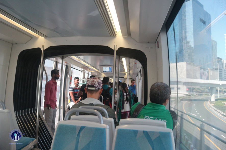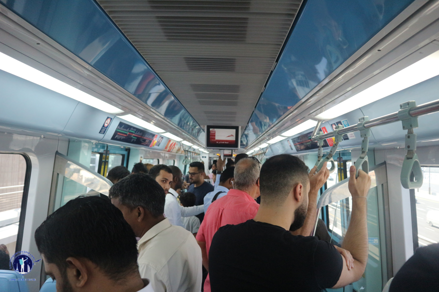 Percakapan kami akhirnya terputus dengan hadirnya Dubai Metro berwarna biru langit. Aku menaiki gerbong tengah sedangkan Ahmed tercecer di gerbong lain. Kondisi penumpang yang penuh sesak, memaksaku berdiri hingga di tujuan akhir.