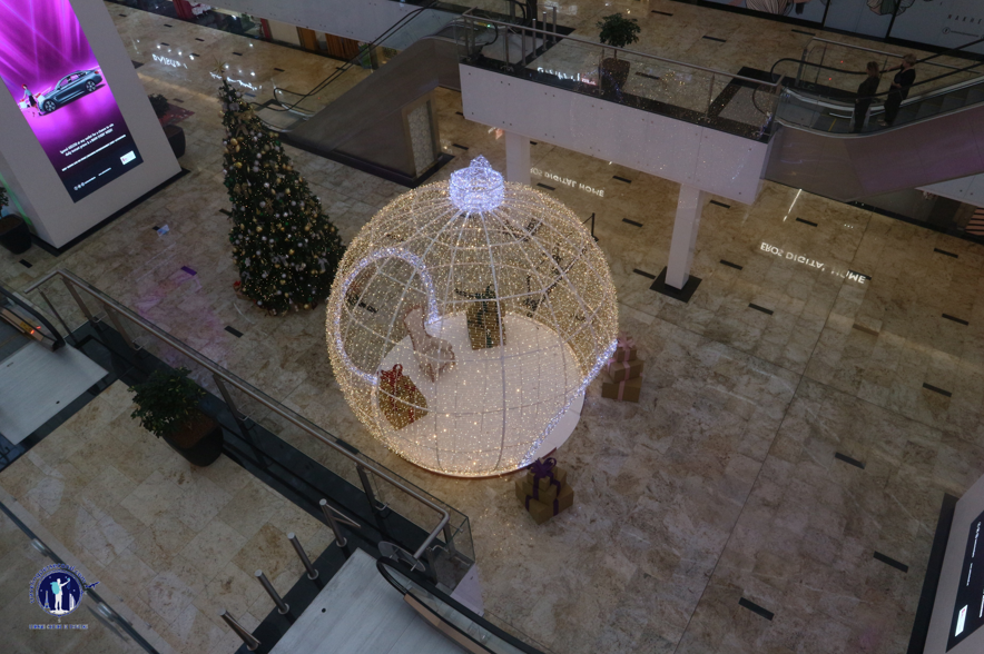 Decorative lighting tampak dominan tertampil di tiang-tiang raksasa pusat perbelanjaan tersebut. Menjadikan tiang-tiang pancang itu sebagai komponen dekoratif yang membuat Nakheel Mall lebih elegan. Aku menemukan logo CINMAR Lighting Systems sebagai aktor utama yang mengembangkan sistem pencahayaan di mall megah tersebut.