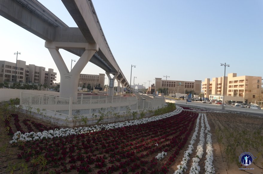 Menuruni tangga, aku berhasil menginjakkan kaki di jalan utama sisi utara Nakheel Mall. Aku hanya perlu menyeberangi jalan utama itu untuk bisa mengeksplorasi salah satu kawasan residensial di sebuah area berbentuk daun palem di pulau reklamasi Palm Jumeirah.