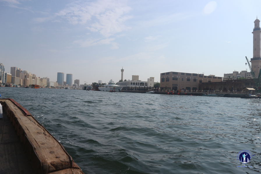 Perahu pun mulai melintasi Dubai Creek . Saat itu, permukaan sungai memiliki riak yang cukup tenang sehingga membuat hati sedikit tenang ketika melakukan penyeberangan. Hanya butuh waktu kurang dari lima menit untuk menyeberangi Dubai Creek.