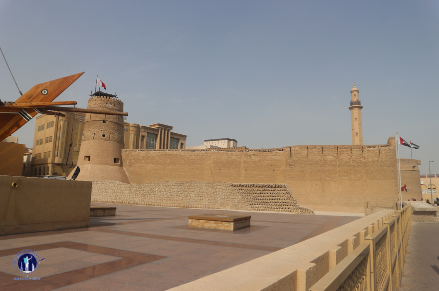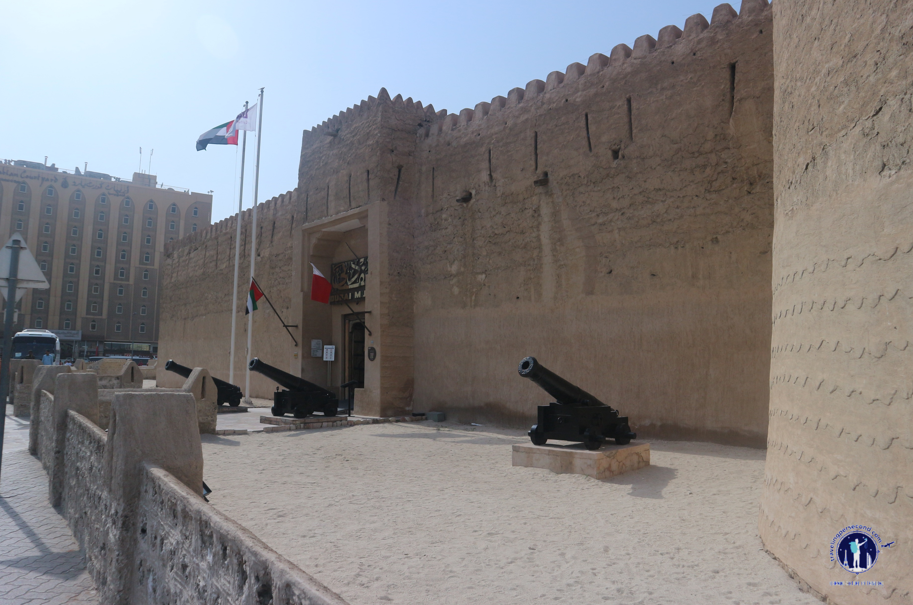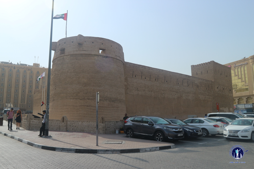 Membelakangi Bur Dubai Al Kabeer Masjid, aku menatap kuat bangunan mirip benteng di hadapan. Aku berdiri tepat di sisi utaranya dan tampak area parkir sisi utara itu dipenuhi oleh kendaraan. Sebuah pertanda bahwa bangunan benteng itu sedang ramai dikunjungi para wisatawan.
