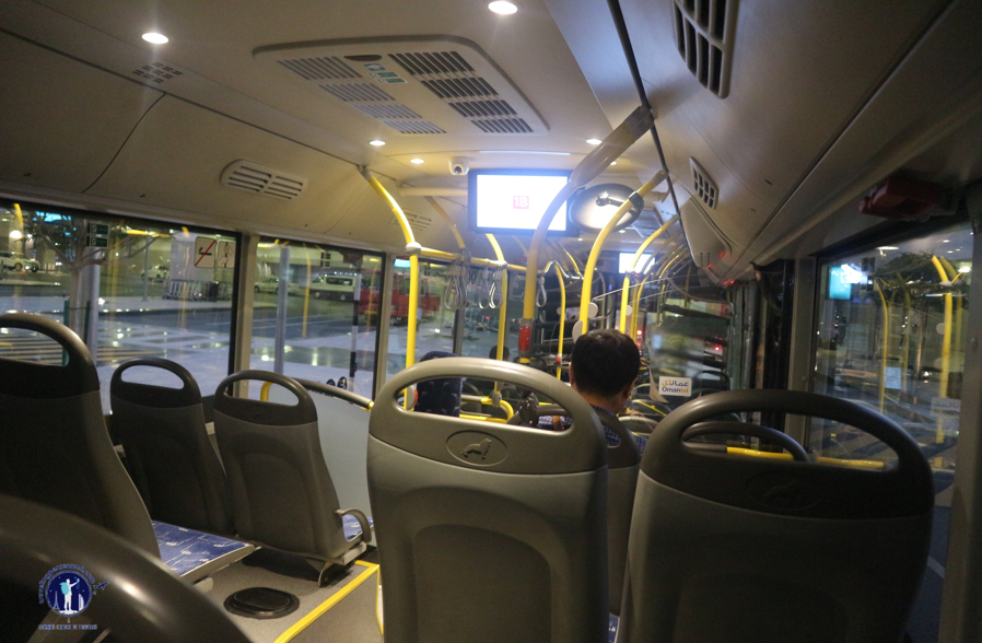 Aku menaiki Mwasalat Bus bernomor 1B melalui pintu depan dan menyerahkan ongkos senilai 1 Rial ke pengemudi berbadan tambun yang mengenakan gamis putih. Setelah pengemudi itu memberikan karcis maka aku mengambil tempat duduk di bagian tengah. Dalam kondisi yang masih setengah gelap, aku telah bersiap.