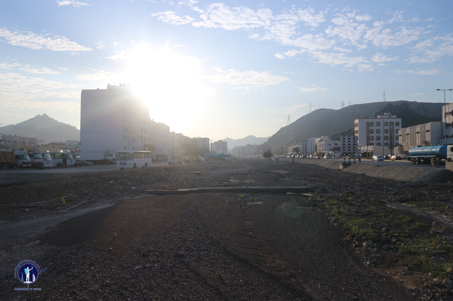 Kini langkahku berpindah di jalan yang menyejajari Alkbir Wadi di sisi timurnya. Sepanjang jalan itu, tampak ruko-ruko lima lantai yang masih tertutup rapat di sisi kiriku melangkah. Sedangkan di sisi kanan lebih didominasi oleh keberadaan truk-truk besar yang bagian depannya ditundukkan sebagai pertanda bahwa mesin-mesin pengangkut itu sedang mendapatkan reparasi.