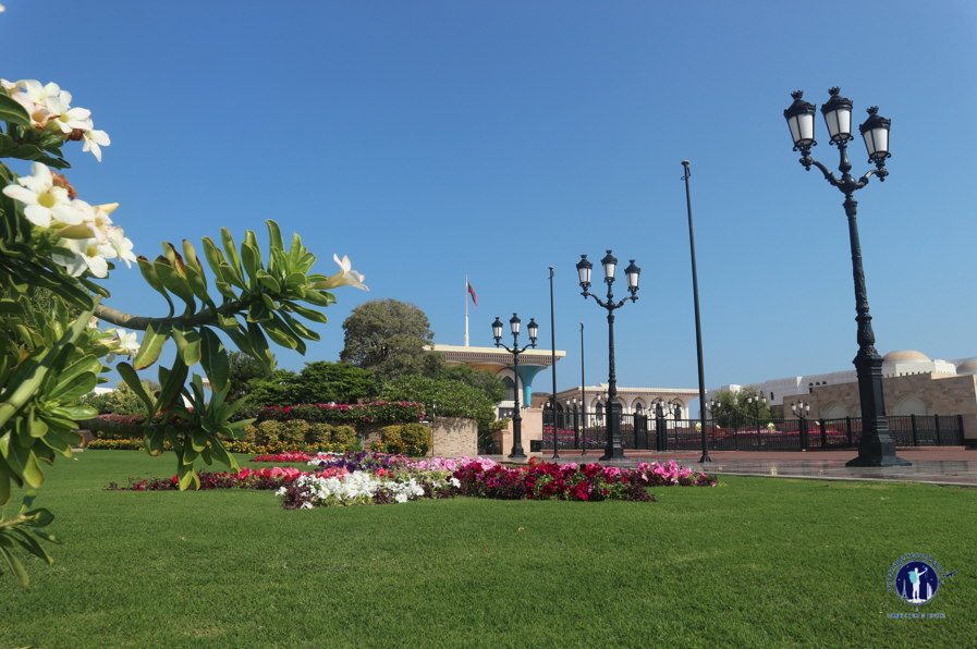 Sebetulnya aku belumlah puas menikmati keindahan yang tertampil di segenap sisi Al Alam Palace. Corak menarik, arsitektur khas, warna mencolok berpadu dengan hijaunya taman membuat Al Alam Palace menjadi aktor utama pariwisata di daerah Kalbuh.