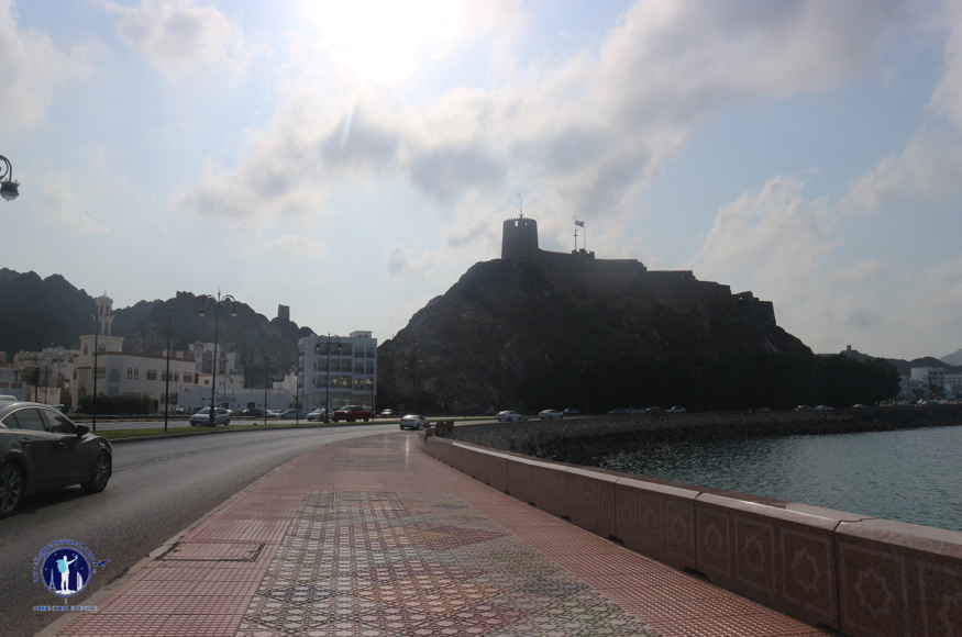 Sedangkah tepat di pertengahan corniche, di sisi selatan Al Bahri Road membentang tinggi Al Hajar Mountain yang dipuncaknya terbangun sempurna sebuah benteng pertahanan masa lalu Kesultanan Oman, yaitu Muttrah Fort.