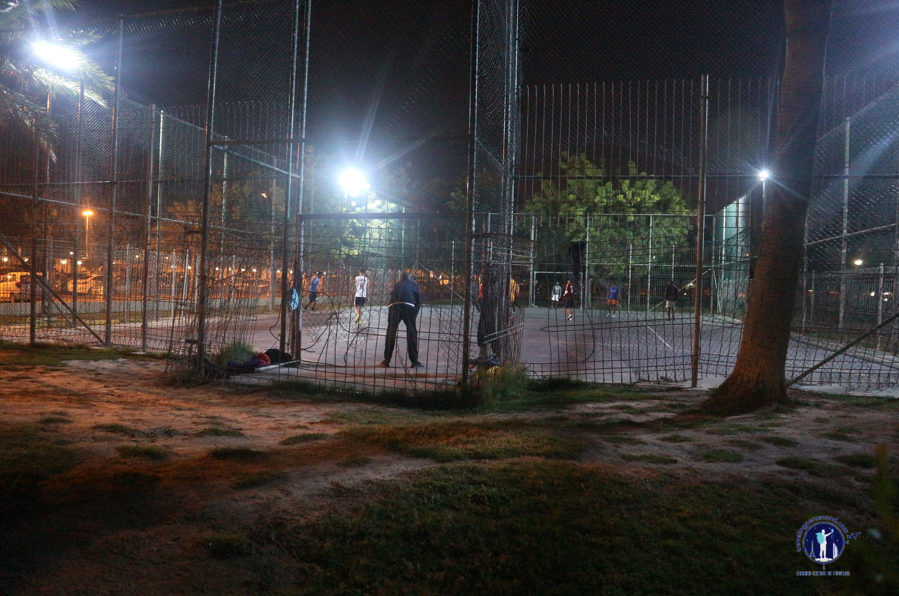 Dan yang menjadi pusat keramaian taman adalah sebidang lapangan futsal berpagar yang tampak dipenuhi para pemuda untuk bermain sepak bola di dalamnya.