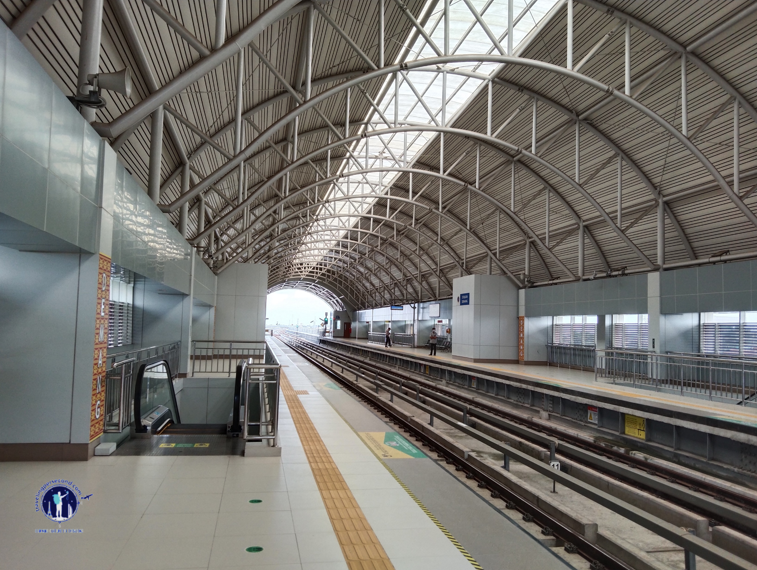 Aku akhirnya benar-benar tiba di salah satu stasiun di rute LRT Sumatera Selatan. Menaiki escalator dari salah satu sisi Jalan Demang Lebar Daun, mengantarkanku berada di dalam bangunan stasiun.