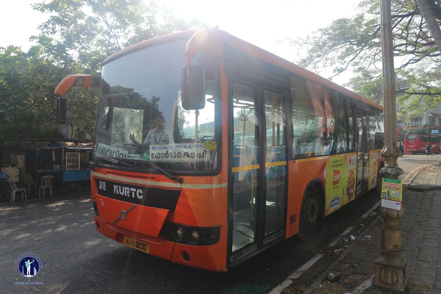 Kerala Urban Road Transport Corporation (KURTC) bus bound for Fort Kochi which runs on Airport Road in front of the hotel.
