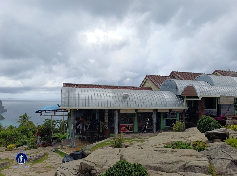 Langkahku untuk sementara dihentikan oleh hujan di sebuah kedai yang terletak di titik tertinggi Phi Phi Islands.